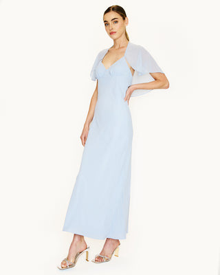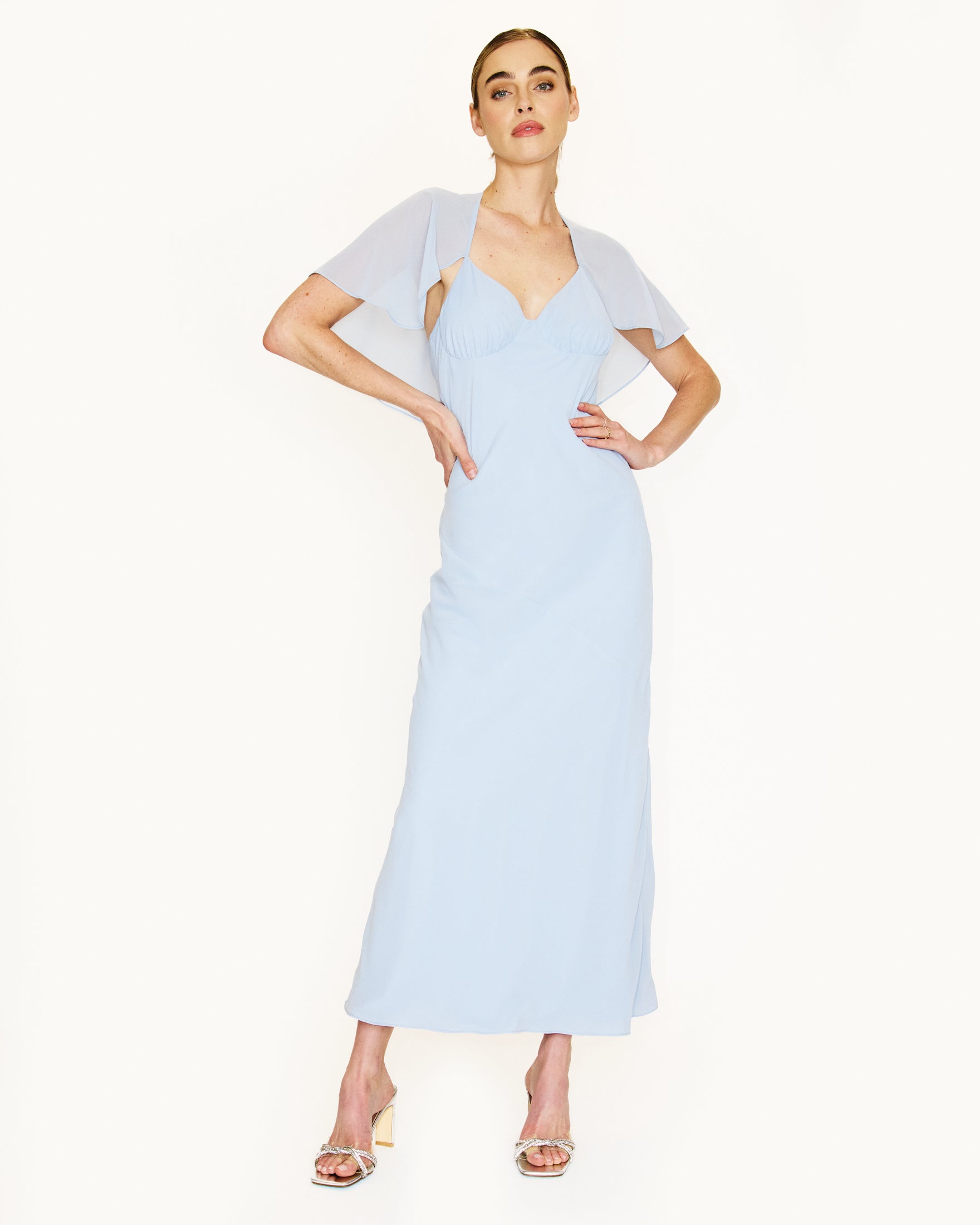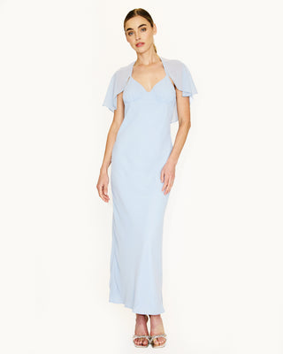 - Lightweight non-stretch chiffon fabric- Cape detail- Hook-and-eye and hidden zipper at side seam- Fully lined