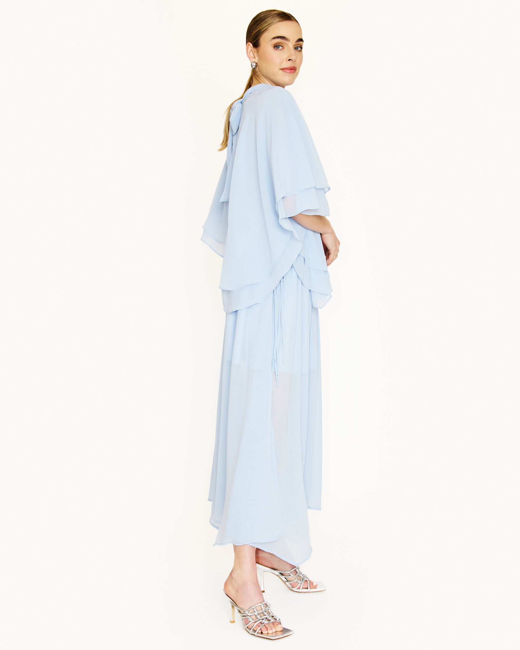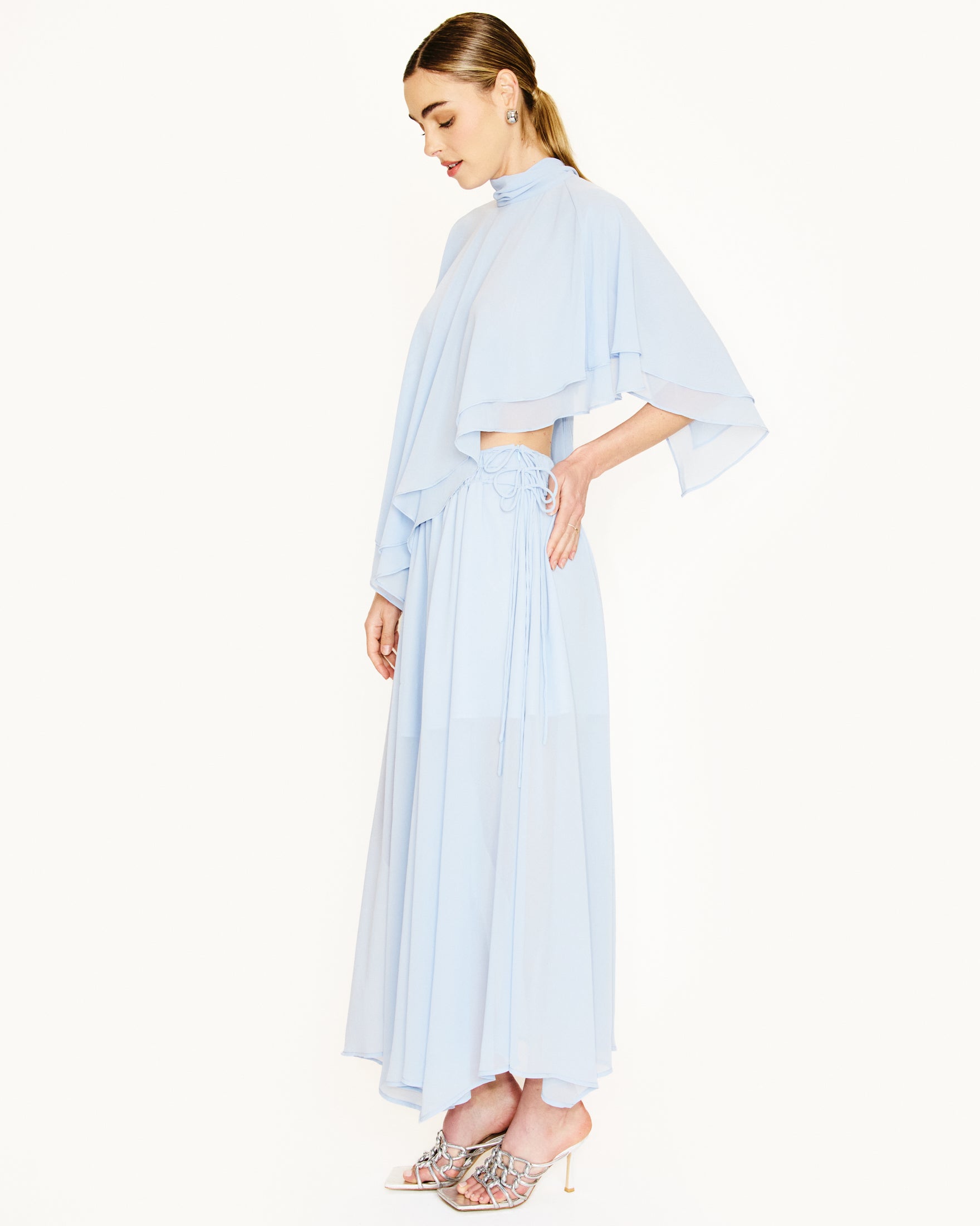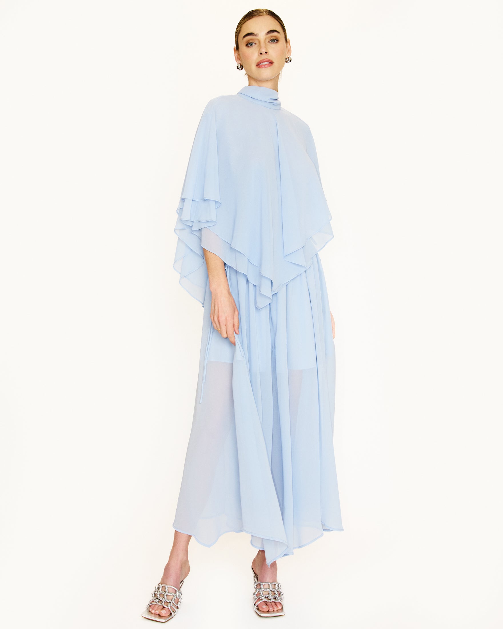 - Draping cape design - Mockneck - Tie back - Dettachable camisole lining