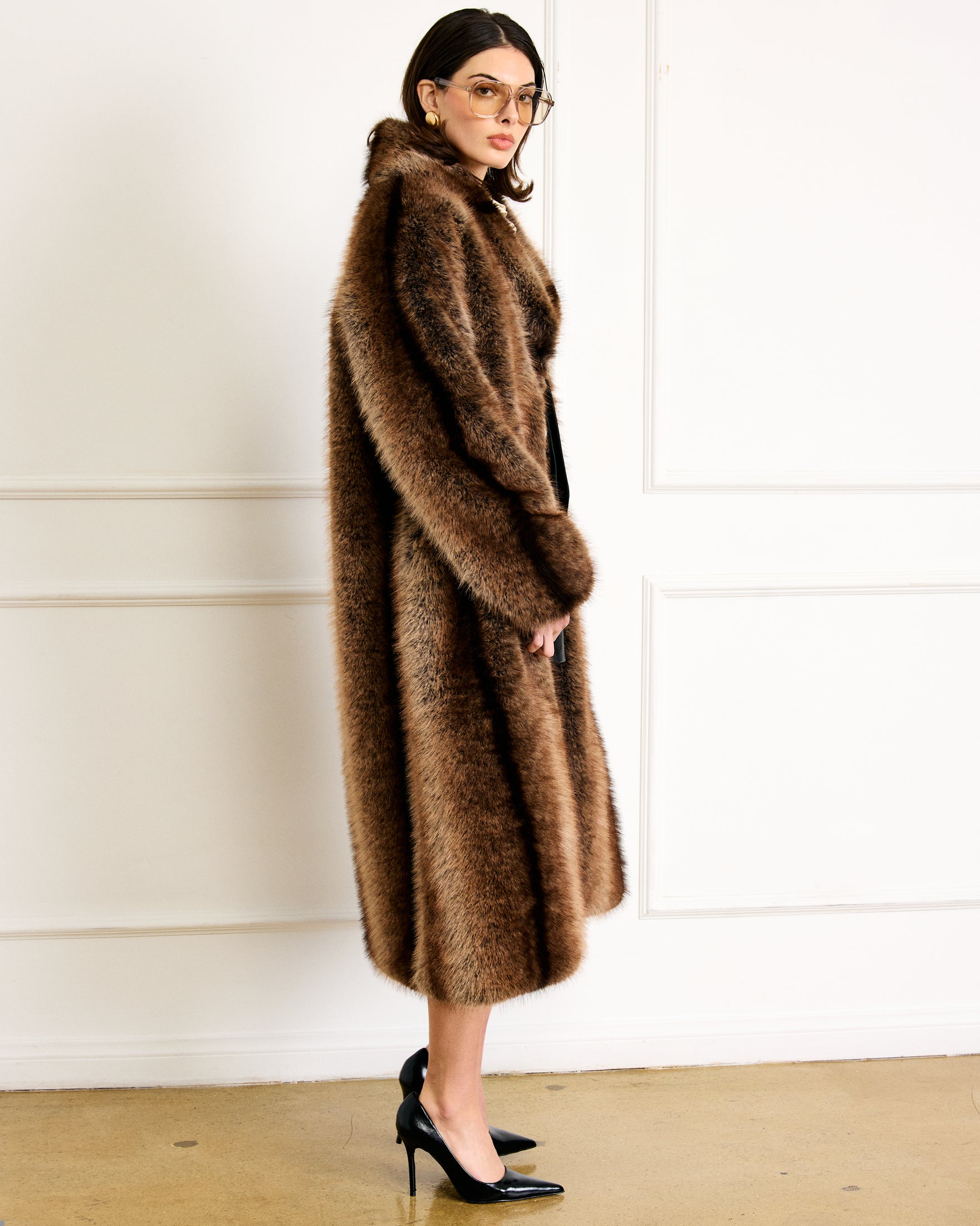 - Heavy-weight non-stretch faux fur fabric - Shawl collared neckline - Long sleeves - Open placket with Hook and eye - On-seam side pockets - Fully lined