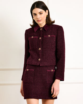 - Midweight tweed fabric - Faux suede contrast detailed - Hook-and-eye and hidden side zipper - Fully lined