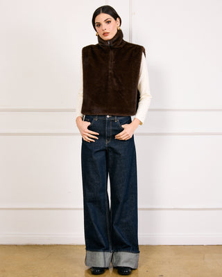 - Midweight faux fur fabric- Sleeveless- Turtleneck design with zip fastening