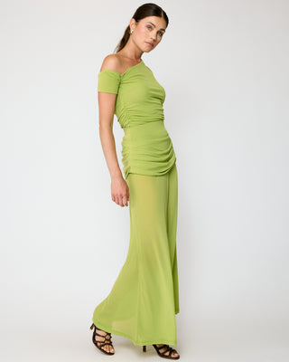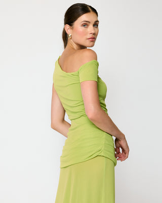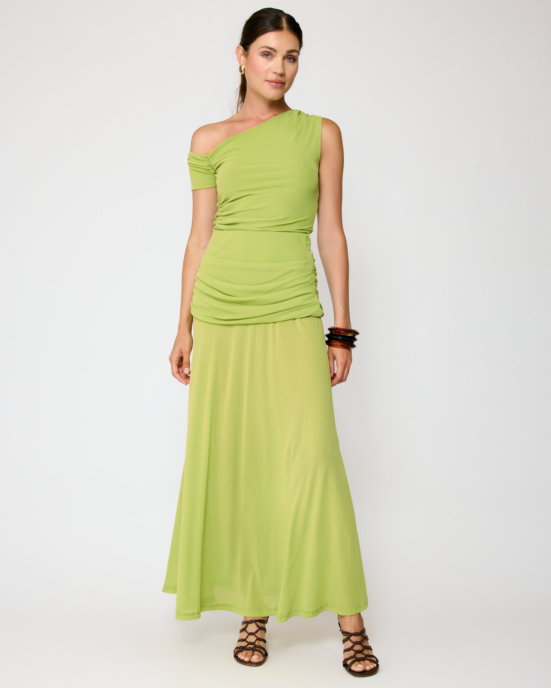 - Lightweight stretch mesh fabric- Asymmetrical neckline with single sleeve- Pull on design- Lined