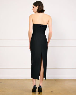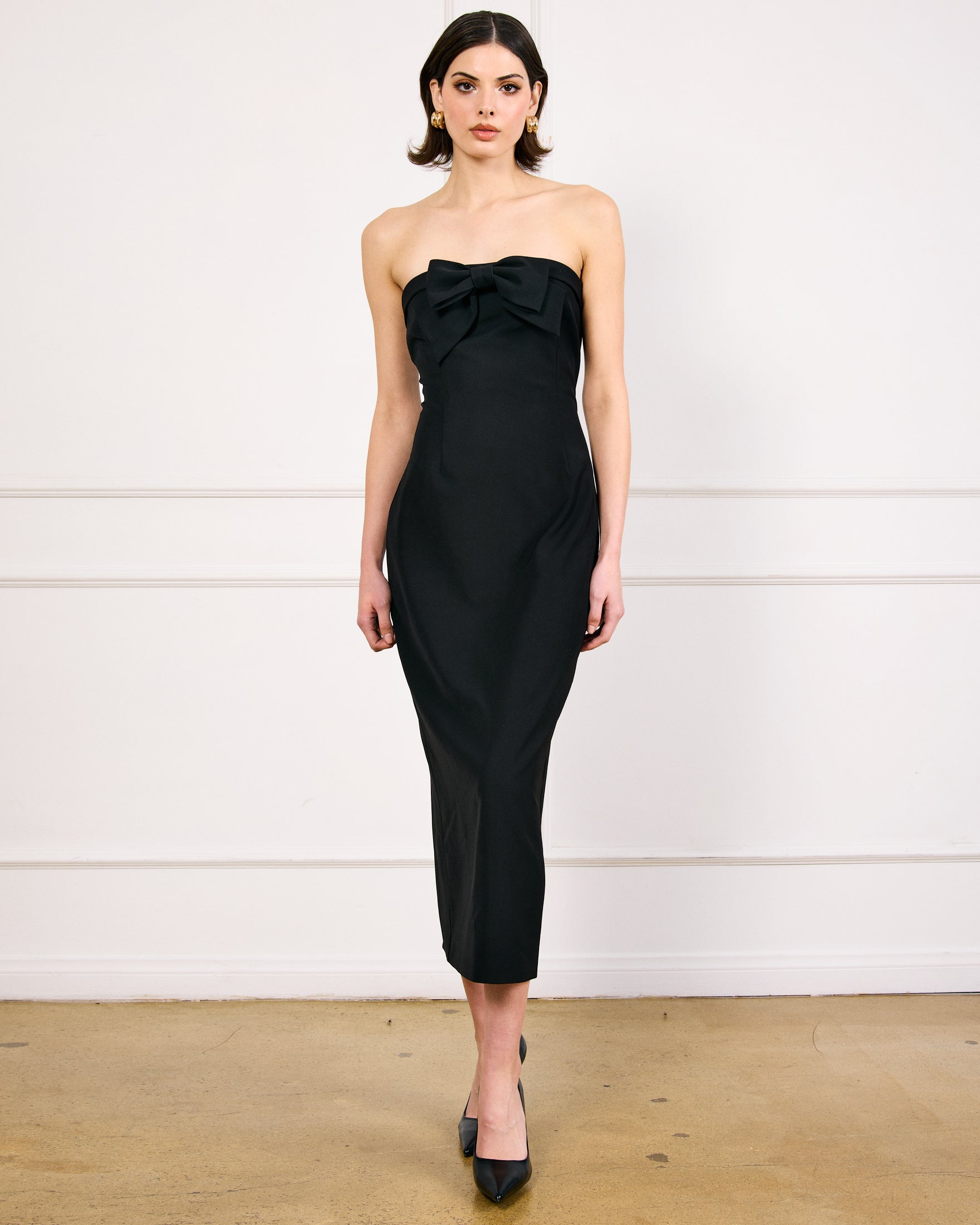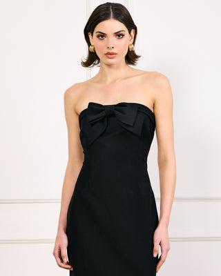 - Mid-weight suiting fabric- Strapless- Beaded bow detail- Hook-and-eye and invisible zipper at center back- Back slit- Lined