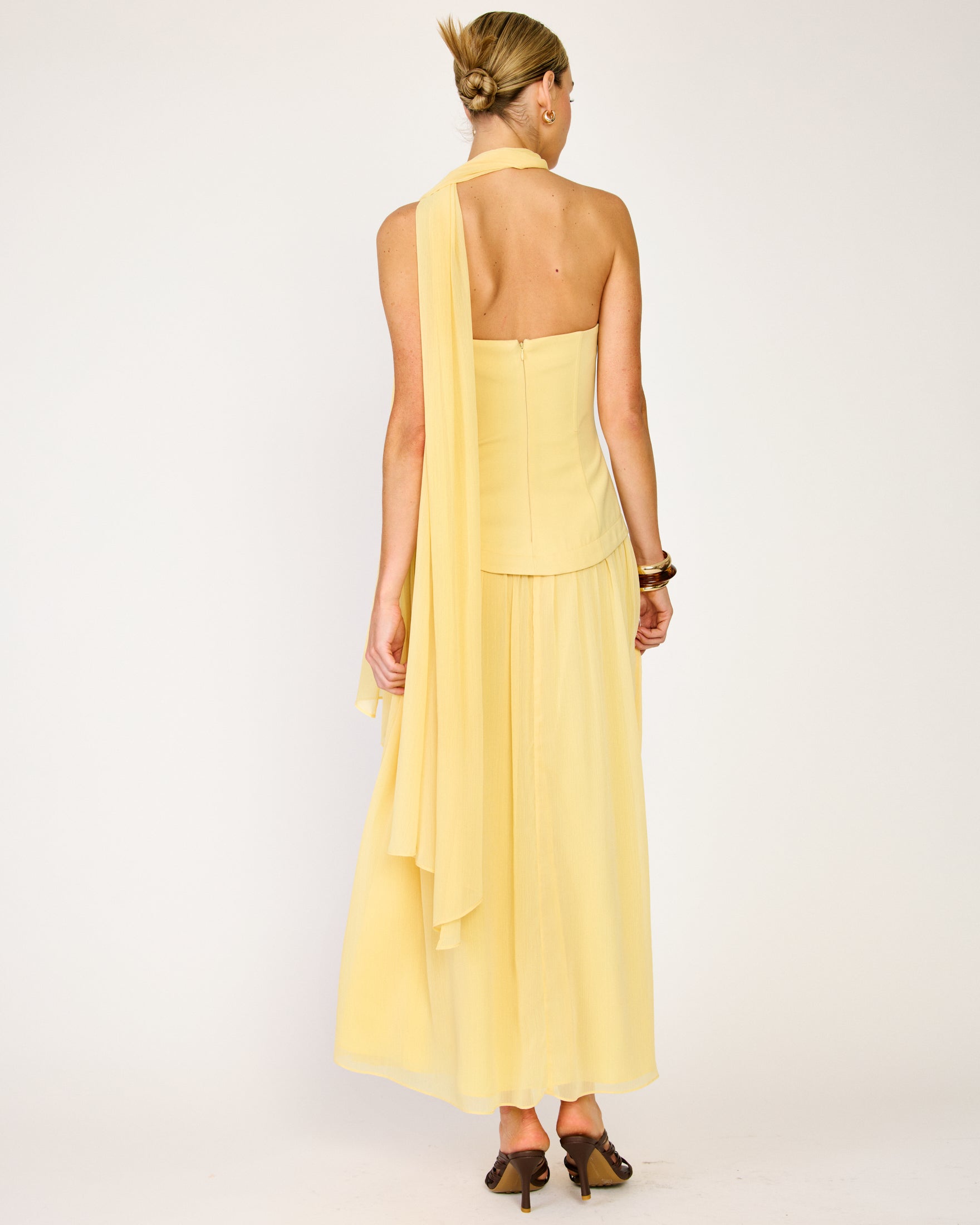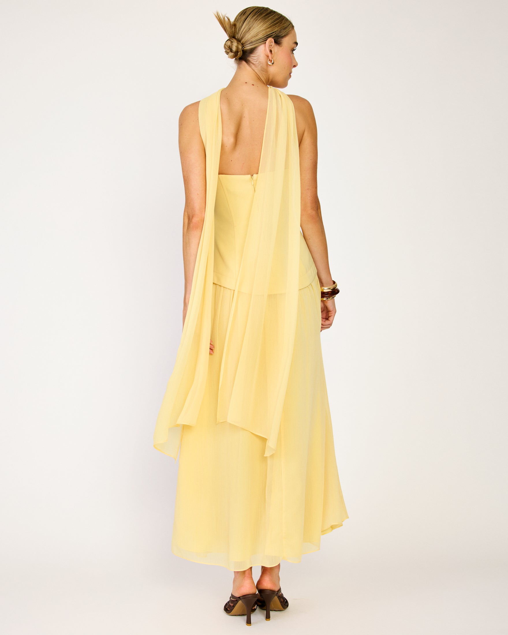 - Hook-and-eye and concealed zipper at center back