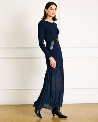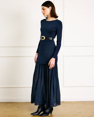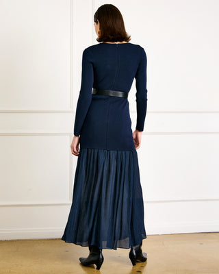 - Mid-weight knit sweater fabric - Intentional semi-sheer skirt in non-stretch textured woven fabric - Hidden side zip closure