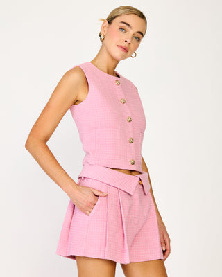 - Mid-weight non-stretch tweed fabric- Fold over waist detail- Pleated- Hidden zip fly with button closure