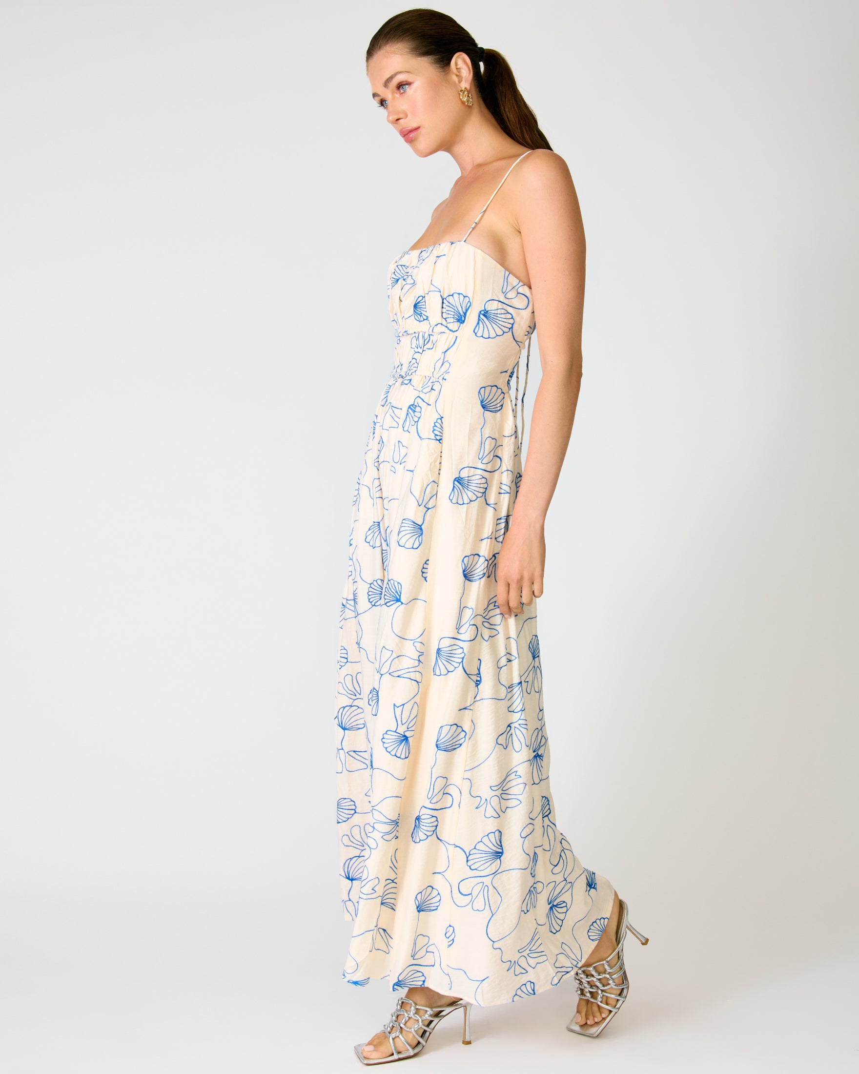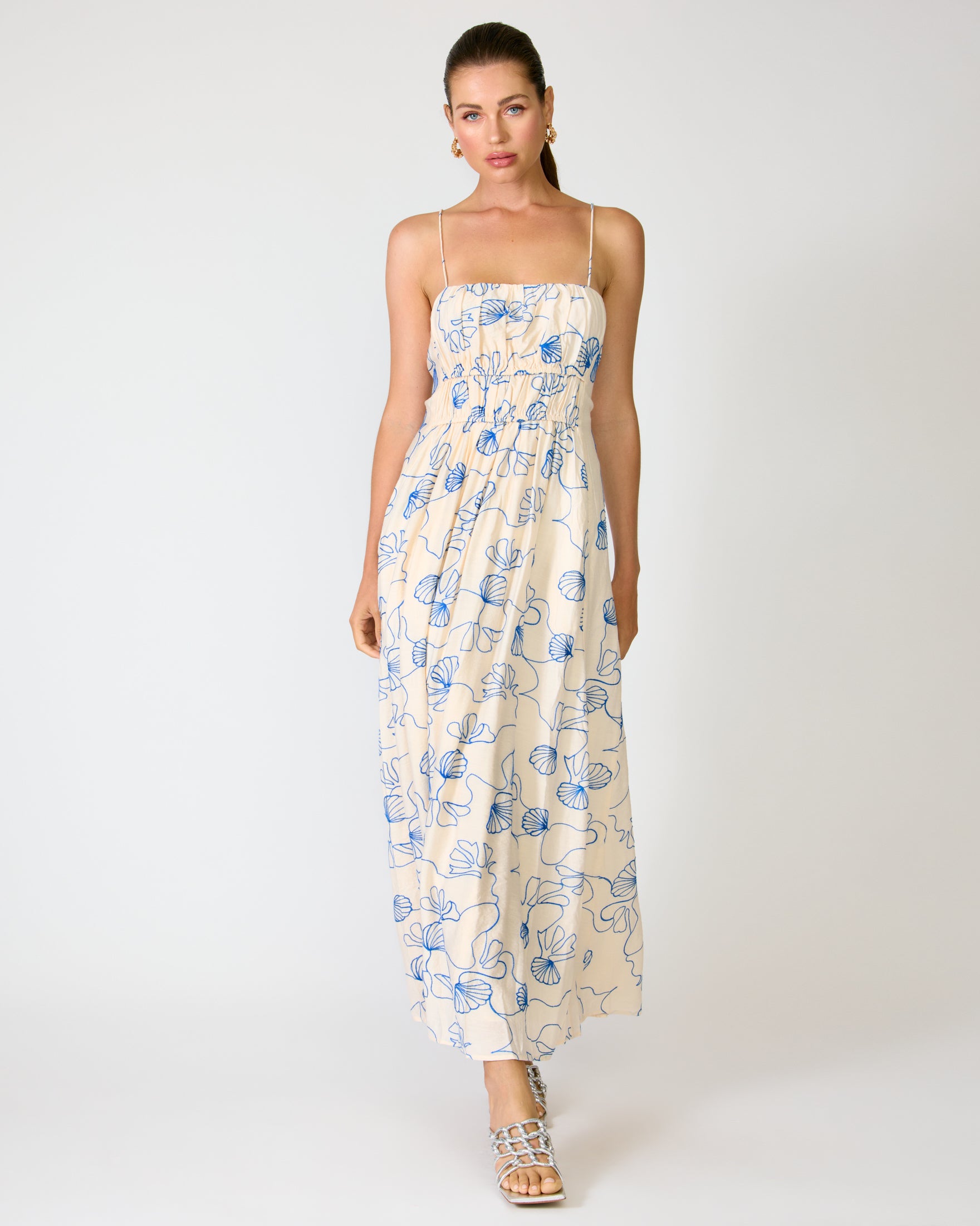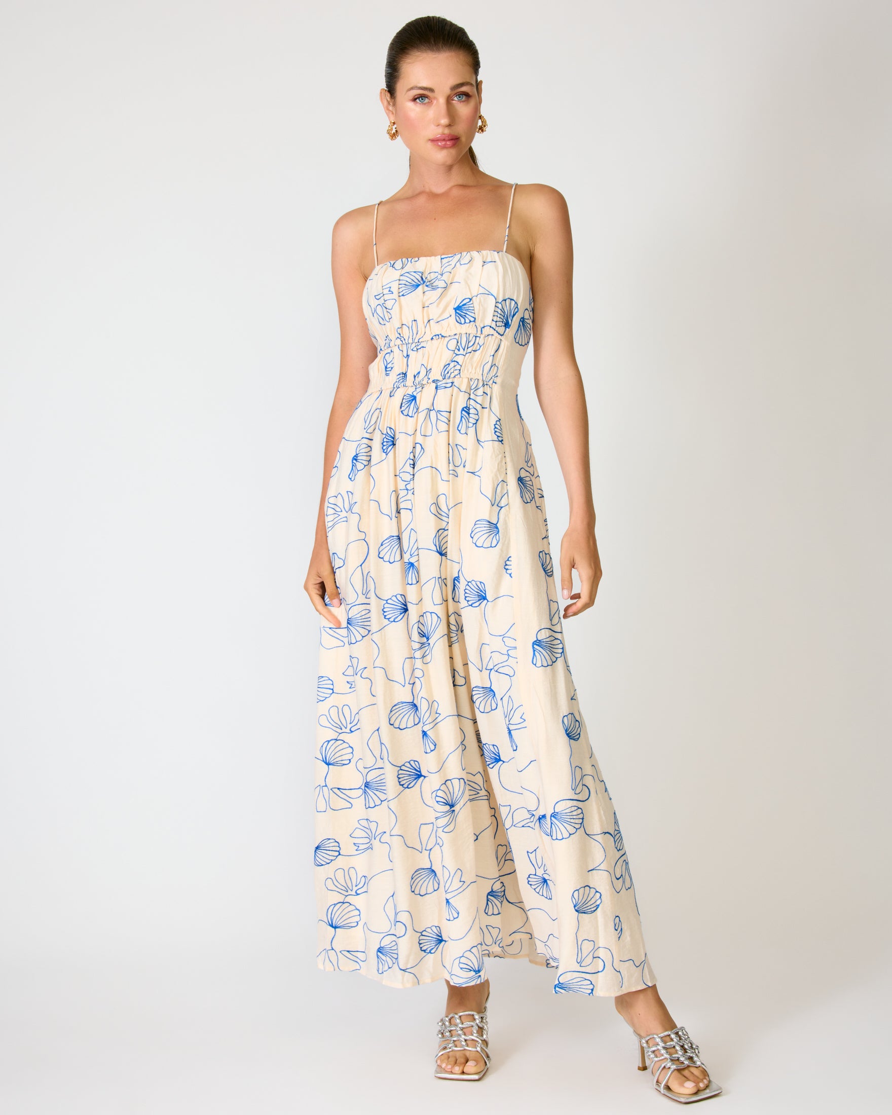 - Mid-weight non-stretch woven fabric with embroidery- Self shoulder straps with petal appliquŽs- Sleeveless- Fully lined