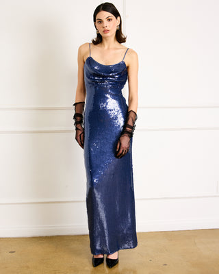- Light-weight sequins embellished fabric - Adjustable shoulder strap - Side invisible zipper - Back slit - Fully lined
