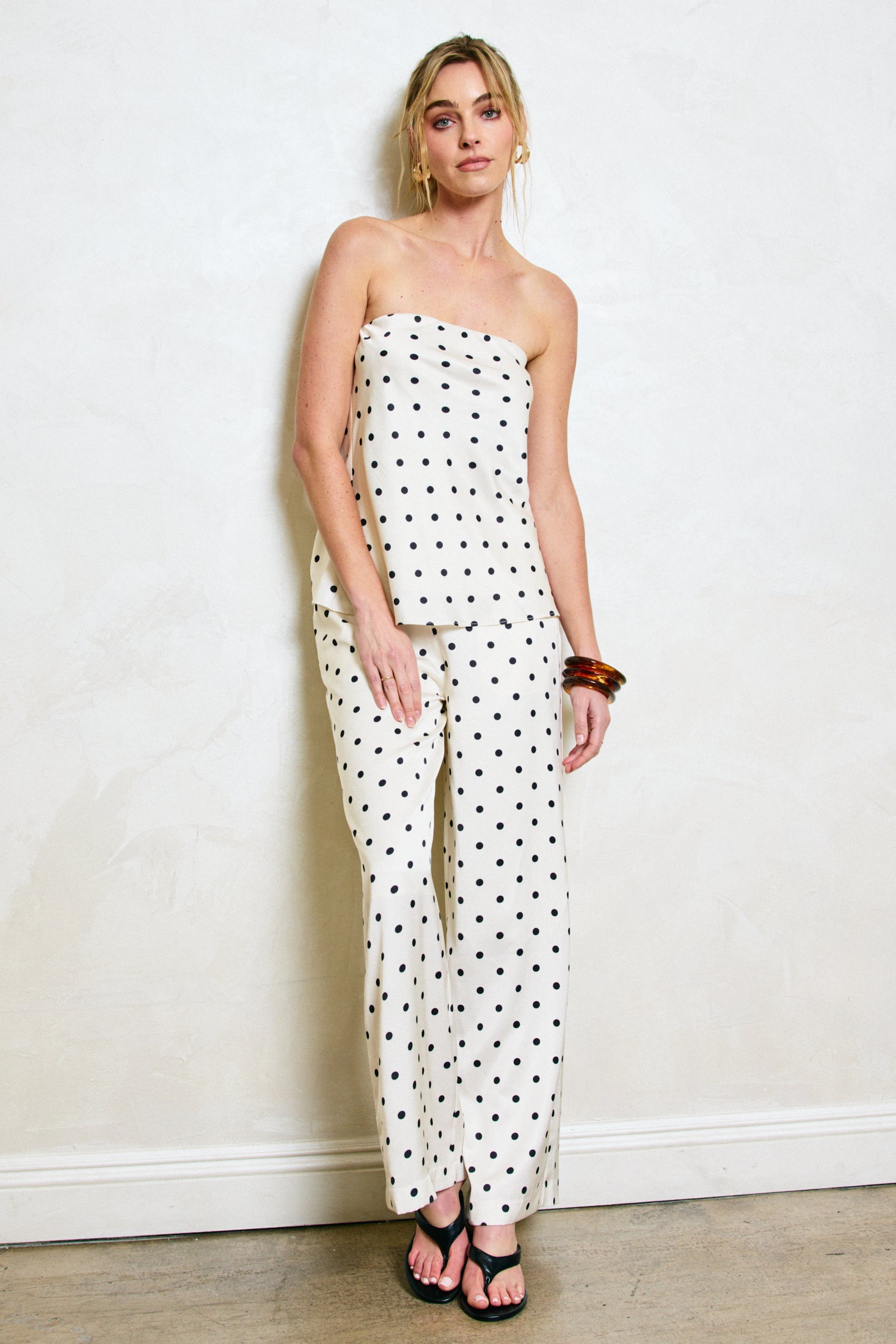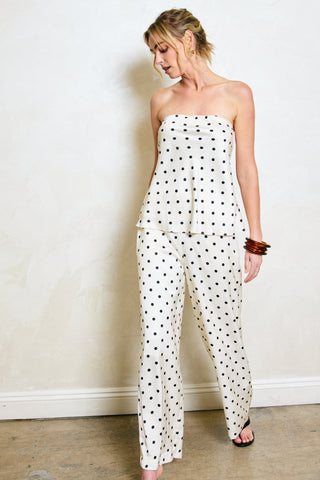 - Mid-weight non-stretch satin effect fabric- Polka dot print- Hip slant pocket- Hook-and-eye and concealed zipper at side seam- Lined