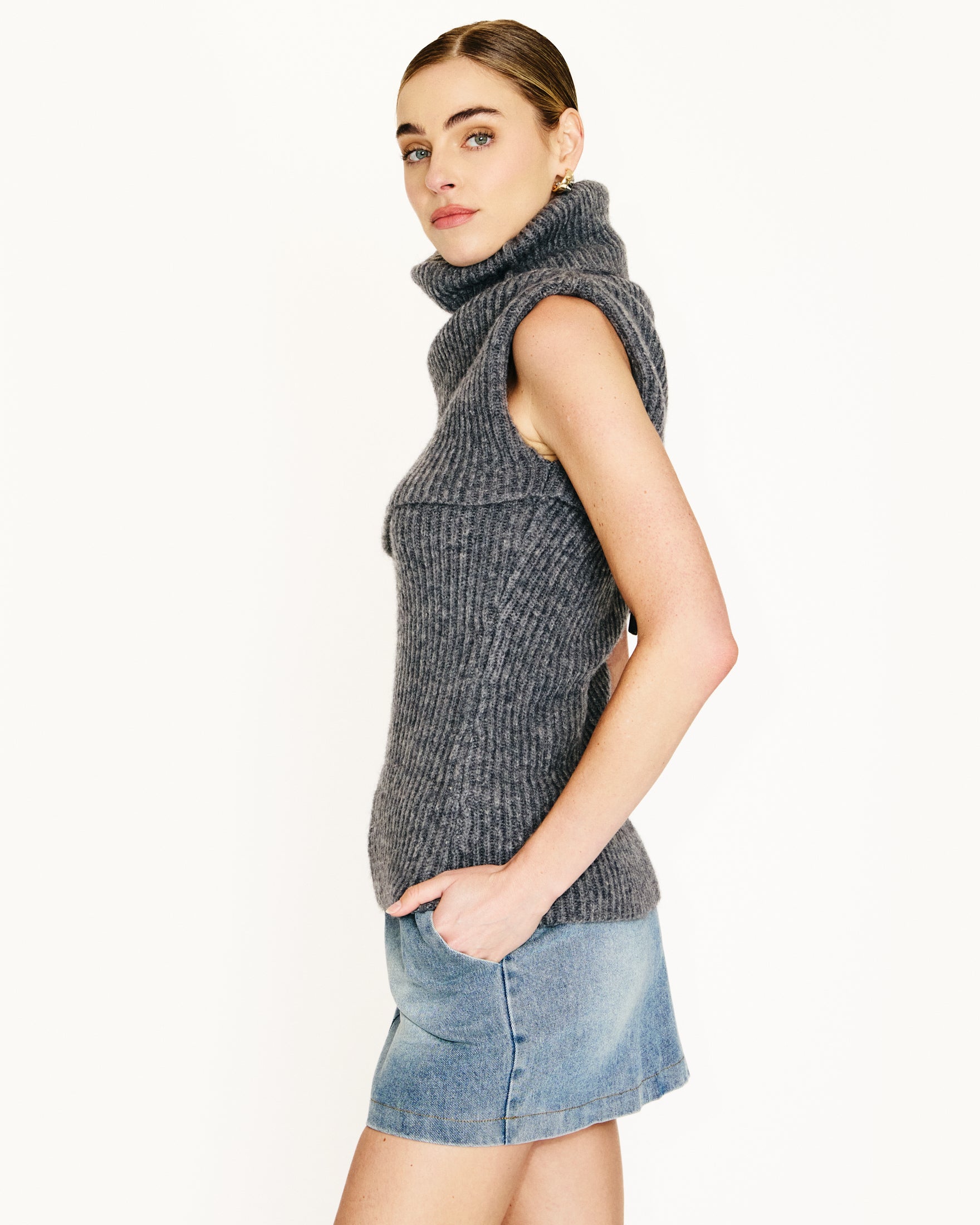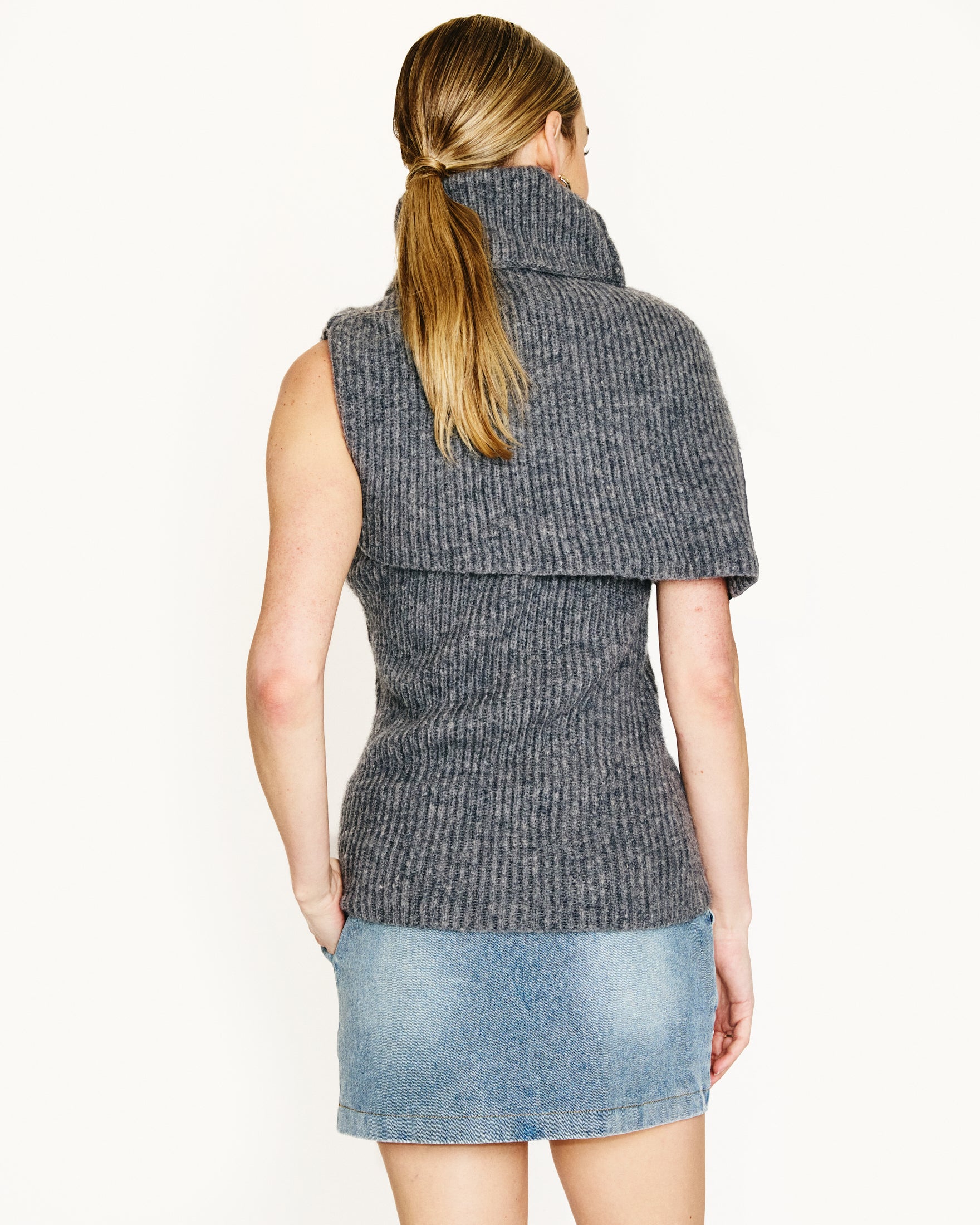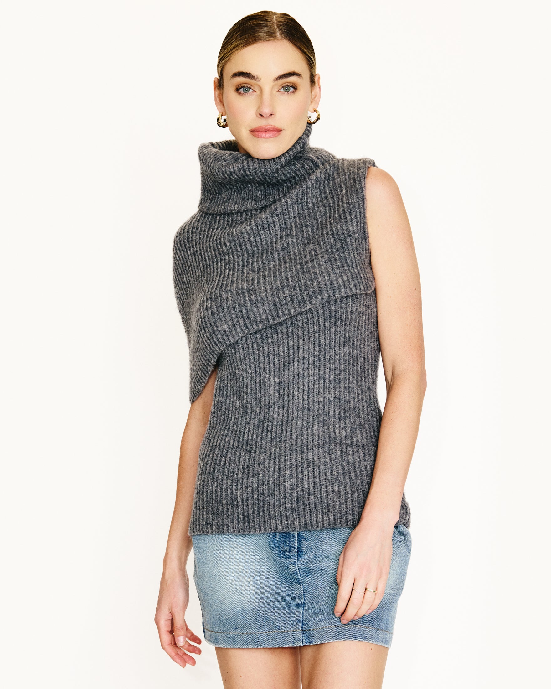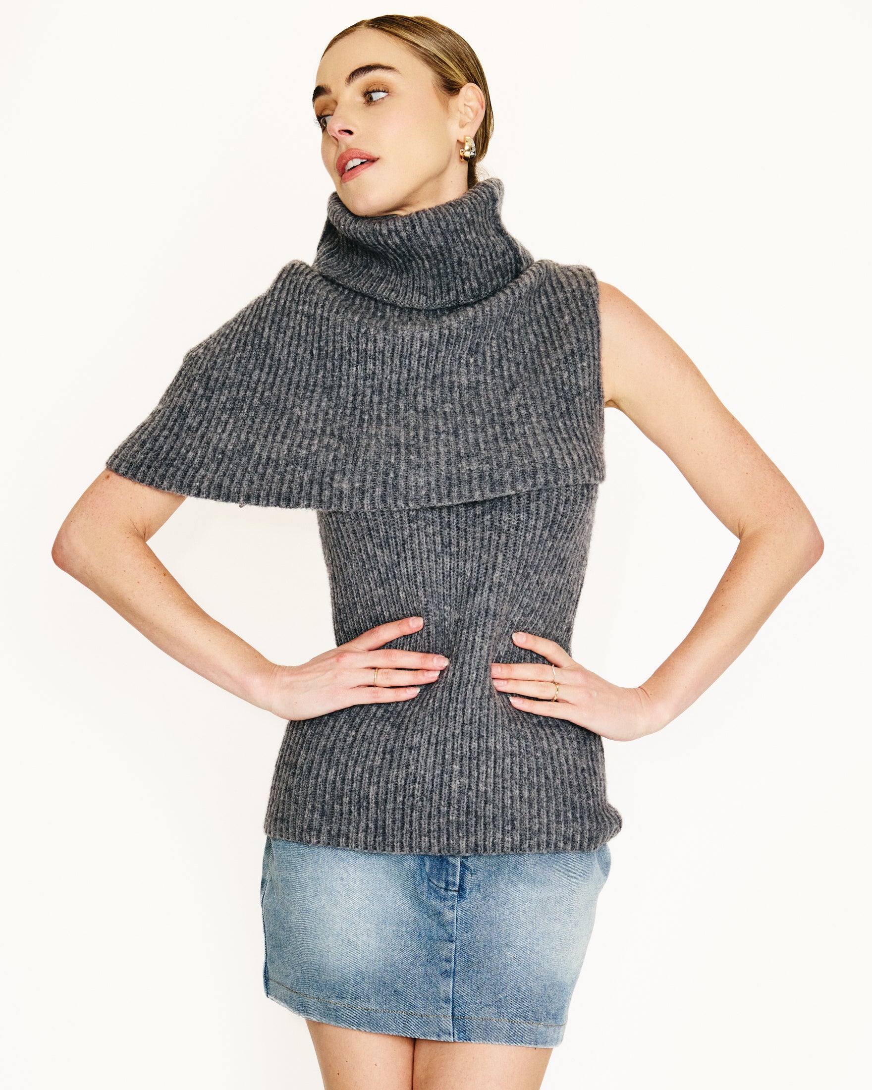 -Heavy-weight rib knit sweater - Turtleneck - Asymmetrical design - Pull on design