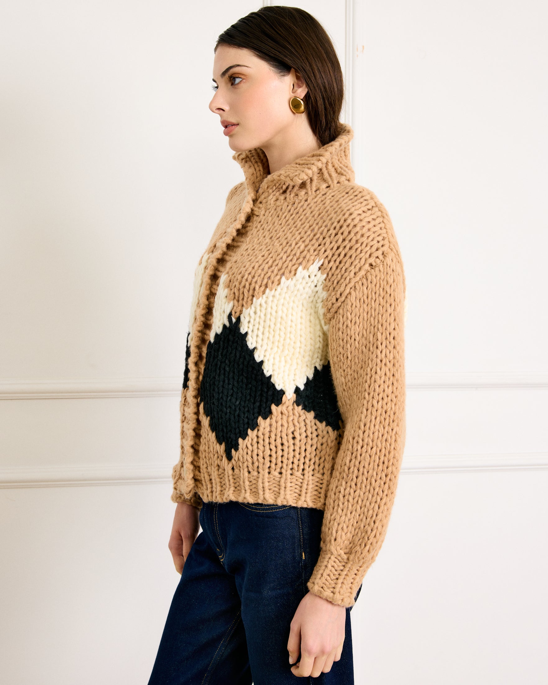 - Heavyweight soft knit sweater fabric - Collared neckline - Front button placket - Drop shoulder - Long sleeves - Oversized